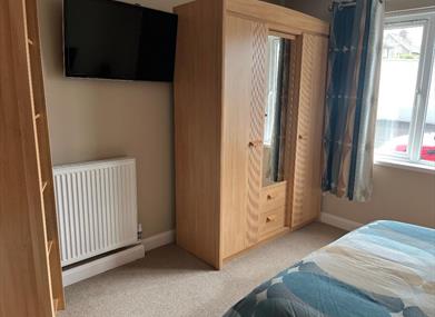The apartment has 2 double bedrooms with bedside units and wardrobe storage and a bathroom with large walk in shower powered from the gas central heating system.