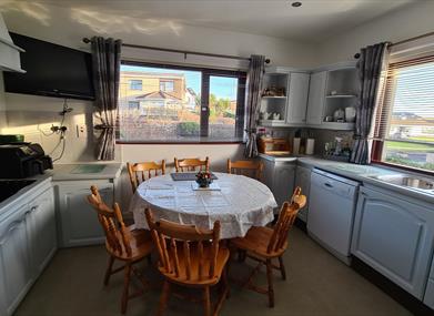 Upper ground floor- consists of well equipped kitchen with all modern conveniences including; microwave, dishwasher, fridge-freezer, electric cooker, hob and air fryer. The large lounge upstairs has views of the beach, Mussenden Temple and Donegal headlands. It is comfortably furnished to include a leather suite, smart TV. The family bedroom has a double and single bed. Shower room with toilet and hand basin. Garage/playroom has a washing machine, dryer and games table. It is suitable for storage and drying of golf and sporting equipment.