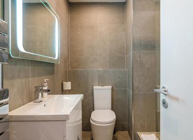 Comfortably sleeping five, our master bedroom contains a king size bed and ensuite bathroom, whilst the second bedroom contains a double and single bed. The bedrooms are complete with dressing tables, illuminated mirrors, hair dryers and straighteners to make getting ready for a busy day sight seeing or night on the tiles that little bit easier and more comfortable. Our luxury family bathroom boasts a walk in shower, as well as illuminated mirrors for an added touch of class.