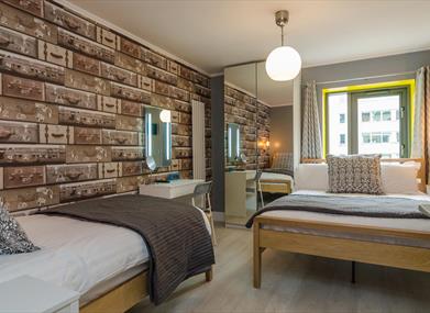 Citygate apartment’s spacious layout and quirky decor features, such as a chalkboard wall and vibrant colours, offer a unique and comfortable home from home for your stay in Belfast.