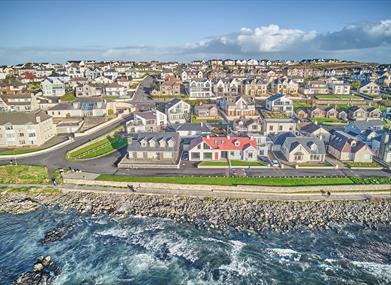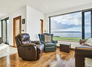 The property sits directly above the coastal path between the National Trust's Portstewart Strand and Portstewart Town and enjoys panoramic infinity views of the Atlantic Ocean (dolphins, seals, porpoises), the beach and out to Lough Foyle and Donegal.