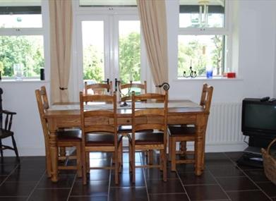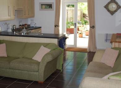 Open plan living/kitchen/dining with mutli-fuel stove and TV. Kitchen fitted with fridge freezer, dishwasher, induction hob and oven/grill.