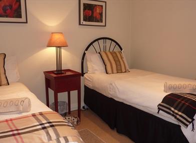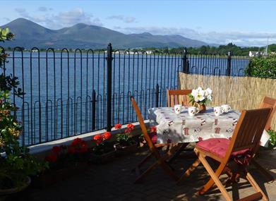This luxury water’s edge, 2 bedroom, 2 bathroom ground floor apartment with its pretty private patio has spectacular views across Dundrum Bay to the majestic Mourne Mountains. It is only a few minutes walk into the village of Dundrum which has excellent restaurants and ample food shopping, and only 3 miles from the pretty town of Newcastle which lies right at the foot of the Slieve Donard. An extra guest bed is readily available, as is a cot.The master bedroom has an ensuite bathroom with walk in shower, and the guest bathroom is spacious with both a bath and shower. The living area is bright and spacious, with an open plan kitchen, dining and seating area which face the constantly changing sea and mountain vistas. The living room opens to the private patio and the twin guest bedroom enjoys pretty garden views. The apartment is well equipped with parking close to the front door. A photographer’s, artist’s, nature lover’s and hikers paradise, it’s local amenities include walking, hiking in the near by Mourne Mountains, golf, fishing, Murlough Nature Reserve, Tollymore and Castlewellan Forest Parks and, for pampering, the luxurious Slieve Donard Hotel.