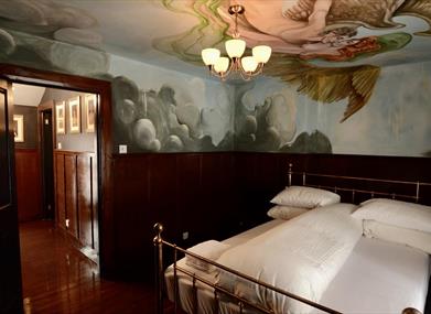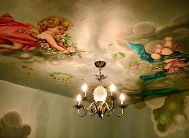 “The honeymoon suites” Our guests sleep under an oil painting, under the gods and angels with the goddess of love our “Irish Aphrodite suite”, or the “Angel cherubs suite” all hand painted murals on the ceilings and walls.