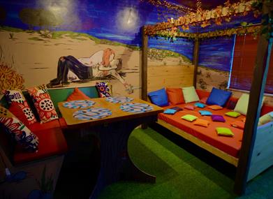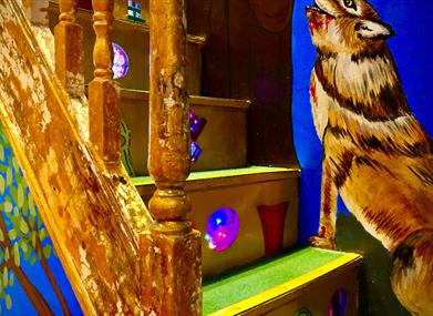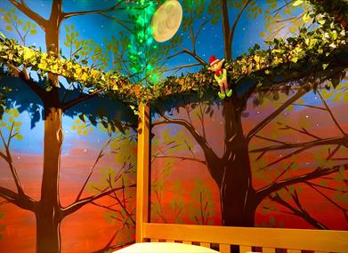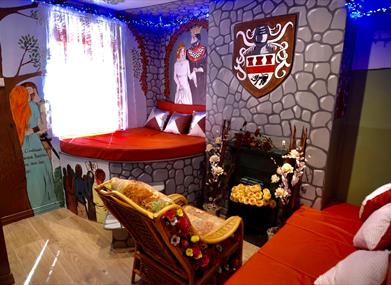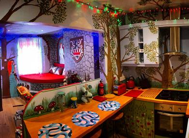 From the front door, to the golden four poster beds on the top of the trees, through the real forest tunnel, soak in the witches cauldron under the ivy tunnel and 2000 night lights continue to the princess castle where we find the end of our story. The Becfola theme world is 100% hand painted, hand sculptured, with hand made furniture including a kissing corner in this beautiful Belfast 1860 cottage. With our ambient sound design our guests will feel they are in a forest and helping Becfola find the love of her life.
