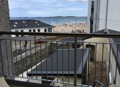 The reception room upstairs has uninterrupted views of beach and sea on east strand, with a sit out balcony. There is an open plan kitchen living room downstairs. The kitchen is equipped with fridge, freezer, cooker, kettle, toaster, microwave and all the necessary utensils and crockery. House also contains a utility room with washing machine, and a toilet and shower room at the back door. Bathroom on first floor with shower over the bath and bathroom on top floor with separate bath and shower. There are 5 double bedrooms, 2 with bunk beds and 3 with double beds. 2 bedrooms have sinks. Free internet, T.V. and DVD player. Some DVDs supplied. This is strictly a non smoking house and no pets.