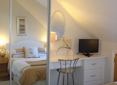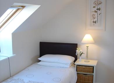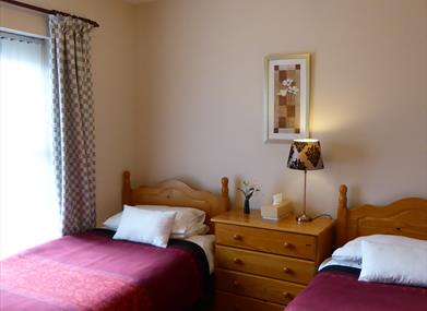 We have a twin room downstairs and a single room and master double bedroom en suite upstairs - the apartment sleeps 5.
