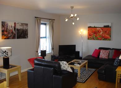 Apartment 7A is a self-catering apartment within Waterfoot, a modern development set in the heart of the Mournes AONB at Newcastle, Co. Down. The Waterfoot complex is a secure gated residence and Apartment 7A overlooks a red brick courtyard with partial views of the Mournes. Main street access is via a remotely controlled electronic gate to a secure underground car parking area and access to 7A is by lift from the car park to the apartment door for increased ease of access and mobility.