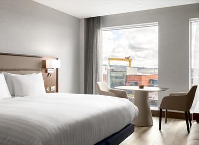 Explore Belfast on foot with Titanic Belfast, City Hall, Belfast Waterfront, SSE Arena and the shops of Victoria Square a short walk away.Built from the ground up with a designers' eye, the contemporary bedrooms have thoughtful touches of luxury with king size beds, Nespresso coffee makers, glass enclosed double showers and purposeful technology including free high-speed internet access and 49” smart TV’s. Guests also enjoy an AC Fitness Room, 24hr room service and can opt for a delicious continental or cooked breakfast.