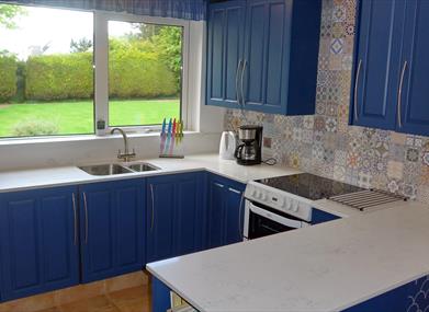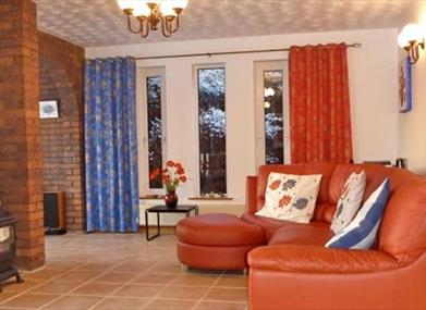 A large detached house features a spacious entrance foyer, kitchen, utility room, lounge, dining area, and sun-room on the ground floor. The first floor boasts 4 bedrooms, 3 double and 1 single, and a family bathroom. All bedrooms have integral wash-hand basins and two of the double rooms have ensuite showers. A futon is also provided allowing for sleeping accommodation for eight persons in total.
