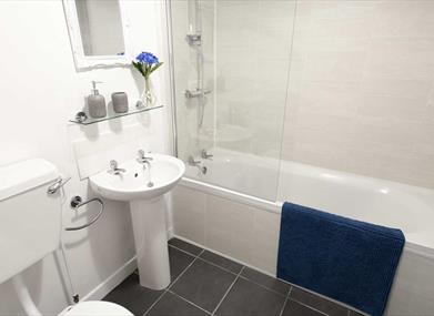 There is a full size bath, perfect for relaxing and a shower over the bath.