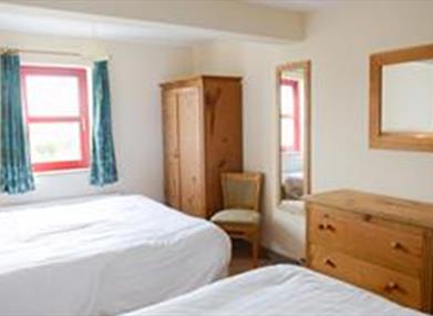 Tornage: “The Lime Kiln”This cottage has a spacious ground floor kitchen/living/dining area, fitted with a kitchen with electric cooker and grill, microwave oven and all necessary cooking and dining equipment. The room has a pine table and chairs by the patio doors that open to a barbeque area. There is a 3-seater sofa bed, 1 two seater sofa and 2 arm chairs, the sofa bed is suitable for sleeping 2 extra persons, the area is also fitted with a pellet burning stove room heater. All bedrooms are on the ground floor, 2 room with king & single bed, 1 with wet-room en-suite, which is wheelchair accessible and 1 with bathroom. The cottage has an oil fired central heating system and a solar panel to assist with heating domestic water. The cottage is in the grounds of An Creagán with a wide range of activities and events for all the family.