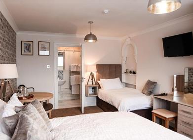 This delightful home in Portrush has provided guests with high quality bed and breakfast accommodation for 30+years. It has recently been extensively renovated and Anvershiel’s guests enjoy the best of traditional B&B experience, free private parking and modern facilities. Six spacious ensuite guest bedrooms offer high speed WiFi, digital freeview TV, DVD players, complimentary tea, coffee and toiletries, a choice of pillow types and a range of high quality bedding. Twin, double, triple and family room types spread over the ground and first floors offer flexible options and an economical stay. A spacious guest lounge contains reclining armchairs, books, board games and the opportunity to chat and make friends amongst other guests. A comprehensive range of tourist information leaflets is maintained and, should you need it, a full in-house laundry service is available for a small charge. Credit card facilities are available in-house.Anvershiels Ulster Fry breakfast is renowned for its quality and served at individual tables in the bright, airy dining room. A wide menu of cooked items and continental style options are offered and each guest’s breakfast is freshly prepared, cooked to order and served by the owners themselves. The attention to detail, the hosts’ geniality, willingness to share local knowledge and the clean and comfortable surroundings at Anvershiel will ensure your stay is enjoyable, relaxing and genuine ‘home-from-home’ experience. Please do read our Trip Advisor reviews and explore the virtual tour of the house on our website www.anvershiel.com.