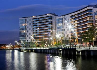 The apartment is located on the river embankment in the heart of the Titanic Quarter, with restaurants, cafes and a convenience store located on the ground floor of the complex.