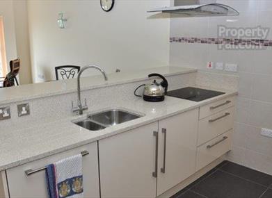 Recently modernised first floor apartment boasts views of the West Strand and Portrush Harbour. On a good day you can see the hills of Donegal. The apartment itself has two bedrooms, one with en suite facilities. There is a separate bathroom both of these have Neptune shower enclosures. The kitchen/ lounge area is tiled and has a washer/dryer, fridge freezer, dish washer, microwave, hob and oven. The gated car parking is at the rear of the property.
