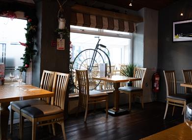 • The restaurant offers a unique mix of cosy homely charm and chic comfort and style