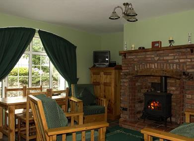 Green and luxuriant describe both the furnishings downstairs and the surrounding countryside which the cottage overlooks. Old wood, rustic brick and stone floors add to the charm but go hand-in-hand with all modern appliances such as freezer, digital satellite TV, video and mobile phone. With its own private patio area, yet full use of all the amenities on site, it is a much sought after cottage.