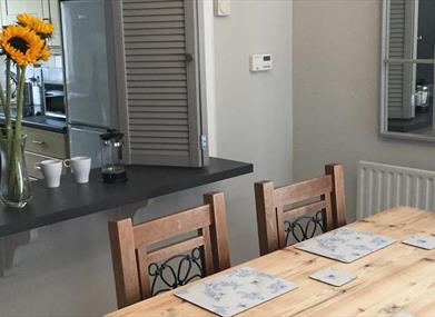 Beachside – a modern coastal ground floor apartment centrally located in Groomsport, boasting pleasant sea views.Beach theme styled accommodation offers guests a spacious open plan lounge/dining area, two bedrooms (double with ensuite, triple with family bathroom) , fully equipped modern kitchen and secure private parking/storage area.