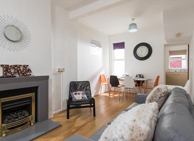 91 Charles Street South is situated in the South side of Belfast, in a quiet area just off Great Victoria Street. Approximately 200 metres from the city centre, you can easily walk into the centre of Belfast in around 5 minutes and this proximity to Belfast City Centre is one of the big attractions of this property.Ground Floor: Consists of two rooms: Living/dining room & separate kitchen, the living/dining room has a dining table to accommodate 6 people and a lounge area ideal for relaxing in, with flat screen TV. The kitchen is fully equipped with all modern appliances. At the rear of the property there is a small outside space with table & 2 chairs suitable for smokers.