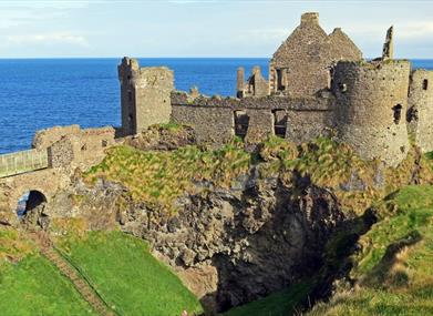 Dunluce Castle is located dramatically close to a headland that plunges straight into the…