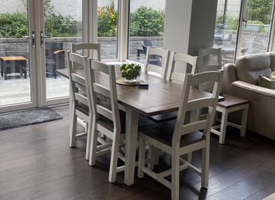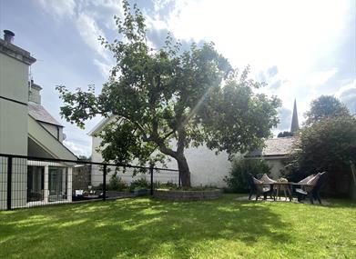 Guests can enjoy a sun terrace, garden, and outdoor play area. The terrace provides a relaxing space, while the garden offers scenic views.The property is framed with colourful flowering perennials and shrubs and the Bramley apple tree stands tall in the rear garden, bearing fruit for home made apple tarts. There is a gas BBQ and dining furniture with arm chairs for those warm summer days in the sun-trapped patio and garden.