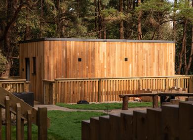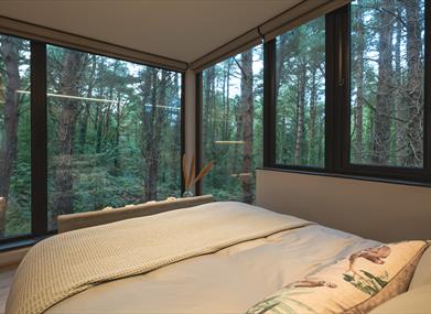 Escape to one of our enchanting treetop lodges and be captivated by the forest views as you gaze out the panoramic floor-to-ceiling windows. Enjoy the peace and tranquillity of the woodland as you stand on the balcony and take in the sights and sounds of nature. Sink into your outdoor whirpool bath under the night sky.