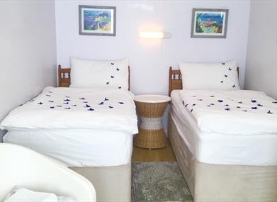 Two bedrooms: one double, one twin. Space for cot in twin room. Spacious kitchen containing dining table and all modern appliances together with electric oven and hob and traditional Aga type range which delivers the oil-fired central heating. Relax in the comfortable living room with wood burning stove and colour television. The bathroom has just been restyled and now has a walk-in shower.