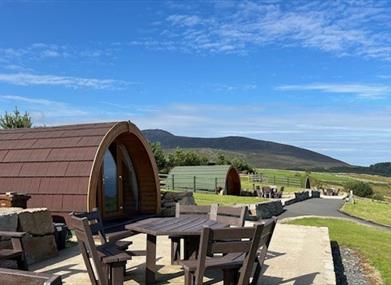 The pod has its own patio area with picnic table & chairs and fire pit. Logs & disposable BBQs are available to buy onsite