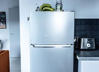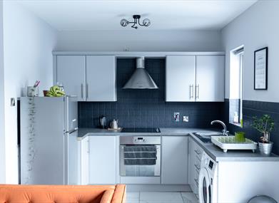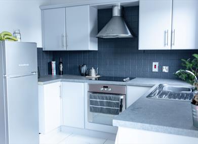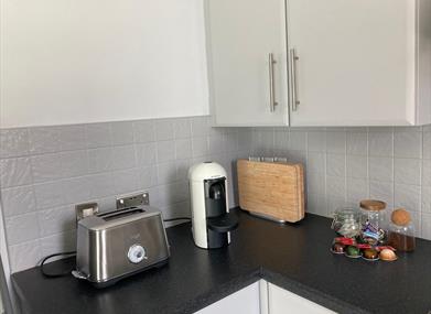 The kitchen is equipped with everything you need. There is a fridge/freezer/hob cooker and oven, washing machine/dryer, microwave, kettle and toaster. There is also a Nespresso machine.