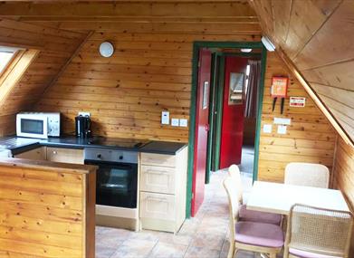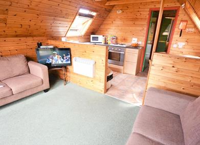 These Glamping Lodges are comfortable, spacious and relaxing. Detached and ideally placed within the holiday park, our Glamping Lodges have their own veranda so you can relax and enjoy the summer evenings or cool autumn nights. This two bedroom lodge sleeps up to 4 people, one double room and a set of bunk beds in the single room. The Glamping Lodge has a galley style kitchen which includes an oven hob with grill, and a microwave. There is small dinette and a comfortable lounge with soft furnishings.