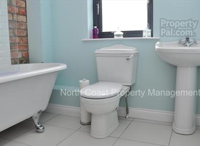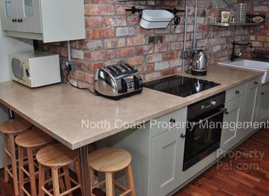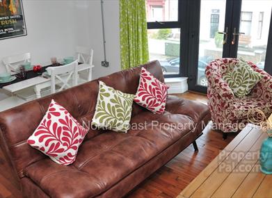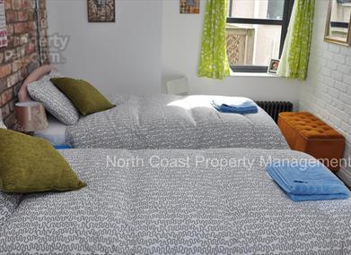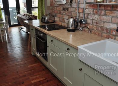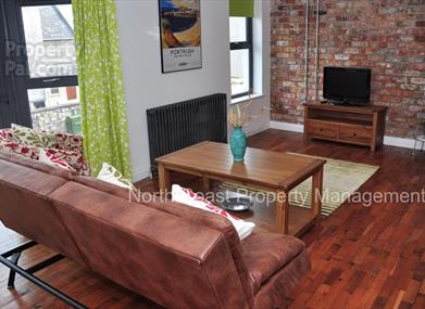 Beautiful stylish loft style apartment in the heart of Portrush. 20 minute drive from the most visited tourist attractions of the Giant's Causeway and Carrick -a-rede rope bridge.First floor apartment with private entry, private parking to rear. Two bedrooms - one king/one twin and one bathroom with roll top bath (shower over it). Open plan kitchen, dining zone and lounge with leather sofa and flat screen TV and DVD player, and dishwasher, washing machine and tumble drier in the kitchen. The apartment is very bright and well decorated with exposed brick effect. Partial sea views and patio doors opening at front of lounge giving the impression of a balcony open area. Unlimited WiFi available.
