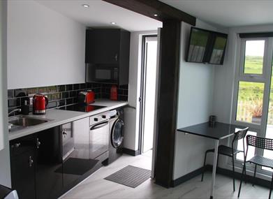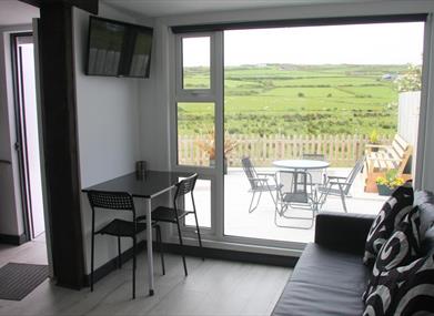 This newly renovated studio with its open planned kitchen diner lounge and king sized sofa bed is perfect the perfect spot to enjoy the views over the meadows and hills, plus the sunsets from the sun-trap patio. The lighting in the lounge and wet room enhances the romance with the different levels of brightness to suit the occasion! Yet only 300 yards to the beach harbour pubs and restaurants. Portballintrae is the perfect place to stay to explore the North Coast. Places of interest include Dunluce Castle, Giants Causeway, Royal Portrush Golf Club, Bushmills Distillery, Game of Thrones locations, Ballycastle and the Glens of Antrim.Facilities include: