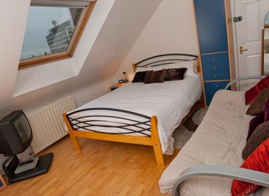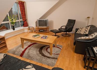 Arthur's Eye apartment is big and spacious, spanning half of the top of the building. A very comfortable accommodation that you will quickly settle into.The master bedroom is a large double bedroom and has an ensuite bathroom. The second and third bedrooms are twin bedrooms and there is also a good sized main bathroom.