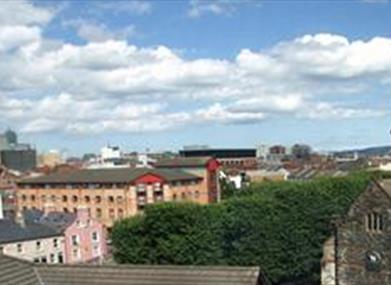 Arthur's Eye apartment is just 100 metres from Bradbury Place and less than five minutes walk to Queen's University. A perfect location for a stay in Belfast, set mid way between Queens University to the south and City Hall to the north.