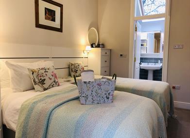 The cottage has 2 bedrooms and each bedroom has its own ensuite and there is also a shower room on the ground floor. All bathrooms have heated towel rails as well as underfloor heating. Body wash and handsoap are provided. The twin beds in the second bedroom can be made into a super-king, should the need arise. A cot and other baby equipment can be provided by prior request.