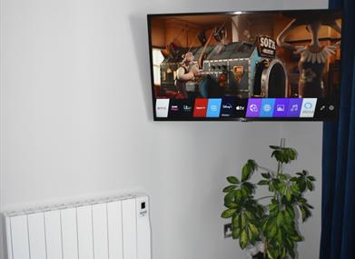 The spacious living room area has a dedicated dining spsce with table and four chairs, recliner sofas for rekaxing after dinner and a large screen smart TV with Netflix. There is a south facing outside balcony with table and chairs to enjoy the evening sun.