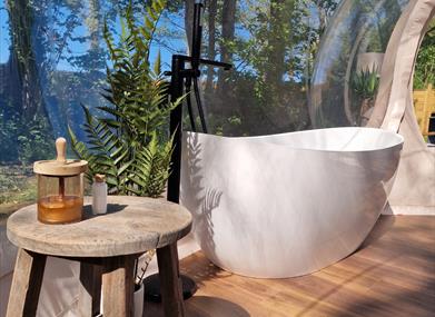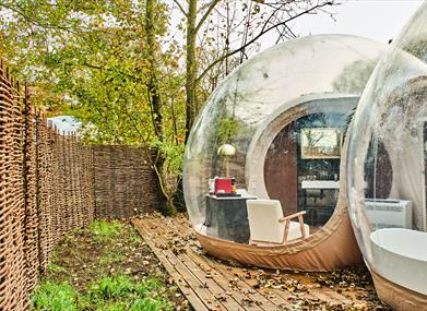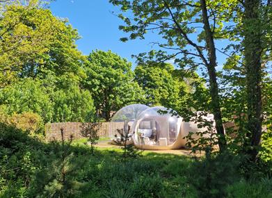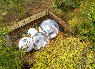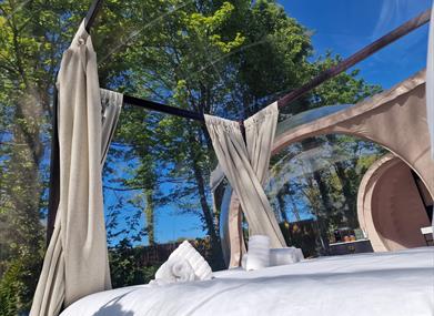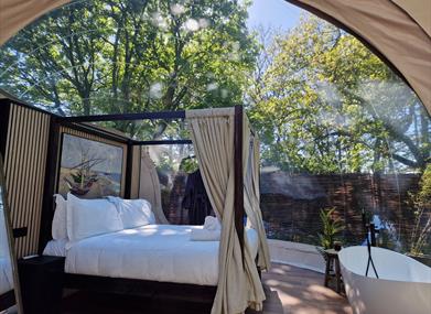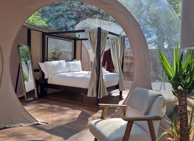 Each dome is crafted with panoramic, transparent ceilings under an ancient tree canopy, allowing you to gaze at the night sky from the comfort of your cosy four poster bed. Wake up to the first light filtering through the trees and the gentle sounds of the forest awakening around you. Each bubble dome is secured in its own private gated area ensuring no disturbance during your relaxing stay.