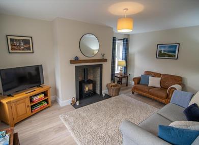 Step inside to discover stunning decor and high quality finishes throughout. The spacious, inviting living space has a cosy log-burning stove, perfect for relaxing after a day of exploring. The fully equipped modern kitchen makes dining a delight. Equipped with top of the range appliances including a dishwasher, washing machine and tumble dryer the cottage really is a home from home.