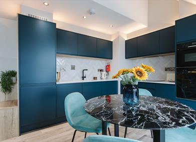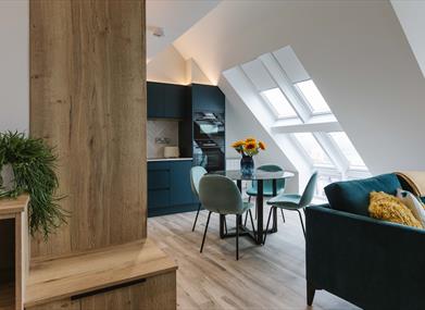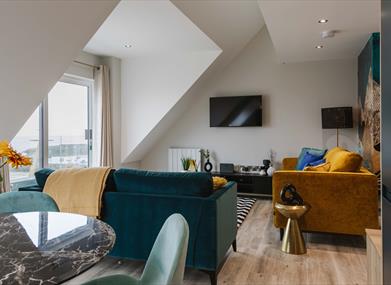 Apartment 7 is a luxury penthouse suite with private rooftop terrace and hot-tub, and a private balcony with a sea-view. The suie has two bedrooms comprising of a luxurious master suite with king size bed and ensuite bathroom, additional spacious second bedroom with bunkbeds sleeping up to 3, a main bathroom, and beautiful kitchen, dining and living area.