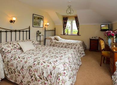 Fully serviced B&B is available in one of our four en-suite rooms in the guest wing, with breakfast in the Victorian dining room of the main house where guests are served at separate tables, from 8 until 9.30am, or from 7.30am on request. All rooms have a shower room ensuite, TV, hospitality tray, hairdryer and free Wi-Fi. Breakfast includes local free -range eggs, and Northern Irish ingredients.