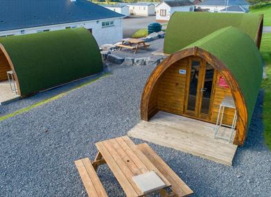 Camping Pods: Camping Pods are equipped with, Sink, Fridge, Microwave, TV, Electric Heater, Picnic Table. Camping Pods are laid out with a dining area with table which converts to a double bed and three single beds. Pods will sleep a family of 5. From £45 Per Night.