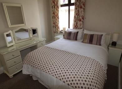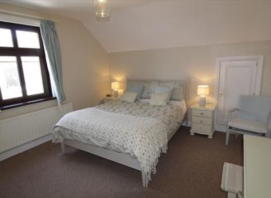 There are 2 ground floor bedrooms and 2 first floor bedrooms. 2 rooms with king beds and 2 with double beds. When you walk out the front door you can see and hear the sea. It is only a 5 minute leisurely walk to the sea front, shops and restaurants. There is off street parking to the rear and a private garden.