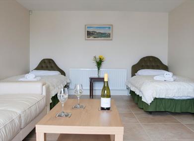 • 1 twin bedroom downstairs with 3 seater sofa.