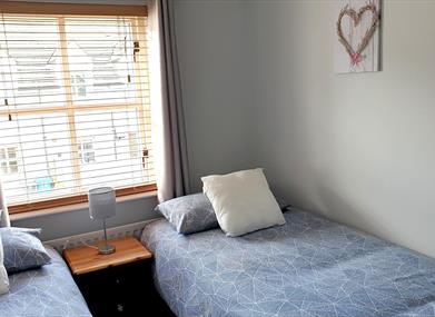 Third Bedroom: Twin beds, double wardrobe. Views over the rear garden.