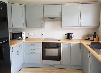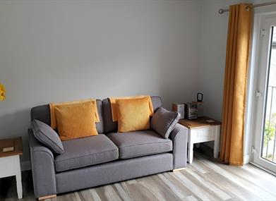 Kitchen/Dining Area: Fully equipped kitchen with electric oven and hob, microwave, toaster, kettle, fridge freezer, iron, ironing board and all the other essentials you might need during your stay. The dining area has double doors opening onto an enclosed garden, ideal for relaxing in the sunshine with a cold drink.