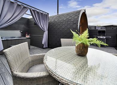 Each pod includes your own private hot tub and patio area with BBQ and outdoor gas heaters. All hot tubs are all roofed over so can be used all year round, no matter the weather.