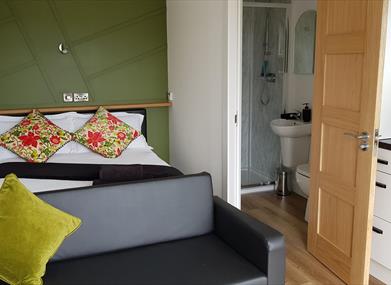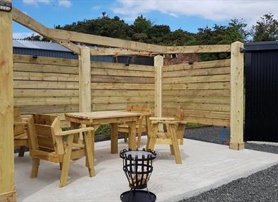 Each lodge has an open plan living area with a kitchenette (microwave, fridge/ freezer, kettle, toaster), en-suite bathroom with shower, toilet, and wash hand basin. There is always instant hot water from the heating system. The garden is fenced in and gated which makes it perfect for families to enjoy. A further outdoor seating area is available also.