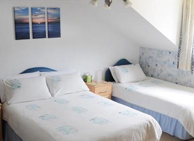 Goldenhill is a modern purpose built guesthouse located 4 miles south west of Omagh. Its hillside location offers stunning panoramic views over 4 counties and the peace and quiet of the countryside. Positioned centrally with Tyrone, Goldenhill is an ideal base to explore Northern Ireland and the northern counties of the Republic.The Guesthouse offers 5 spacious en-suite bedrooms in single, double, twin and family room configurations. All rooms come with modern facilities including free Wi-fi and flat screen freeview TV’s.