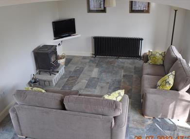 This newly refurbished 2 bedroom barn offers luxurious and comfortable self catering accommodation. There is generous private parking available and a fully contained garden, BBQ area and separate utility/wet room and secure store for guest use. Pets are welcome in the separate facility provided adjacent to guest accommodation. Bike wash supplied.The Barn is furnished to a very high standard and tastefully decorated. It offers excellent living facilities including flat screen TV, DVD player, shower and bath and ample cooking and living facilities to make your stay a memorable one. There is also availability for additional sleeping facilities with double sofa bed.