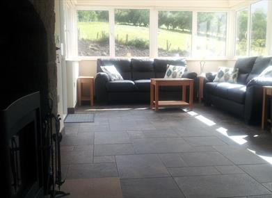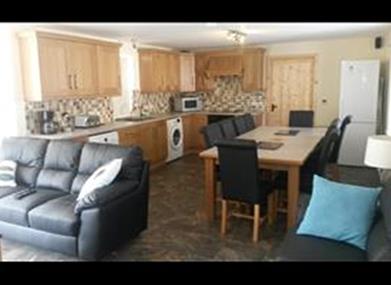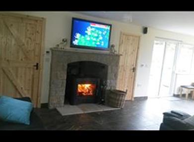 Bearnagh Cottage has a stunning spacious live in kitchen/sun room with granite fireplace and wood burning stove Outside, a massive picnic table is perfect for groups eating outdoors while enjoying the sound of the stream babbling past. A car port is provided.